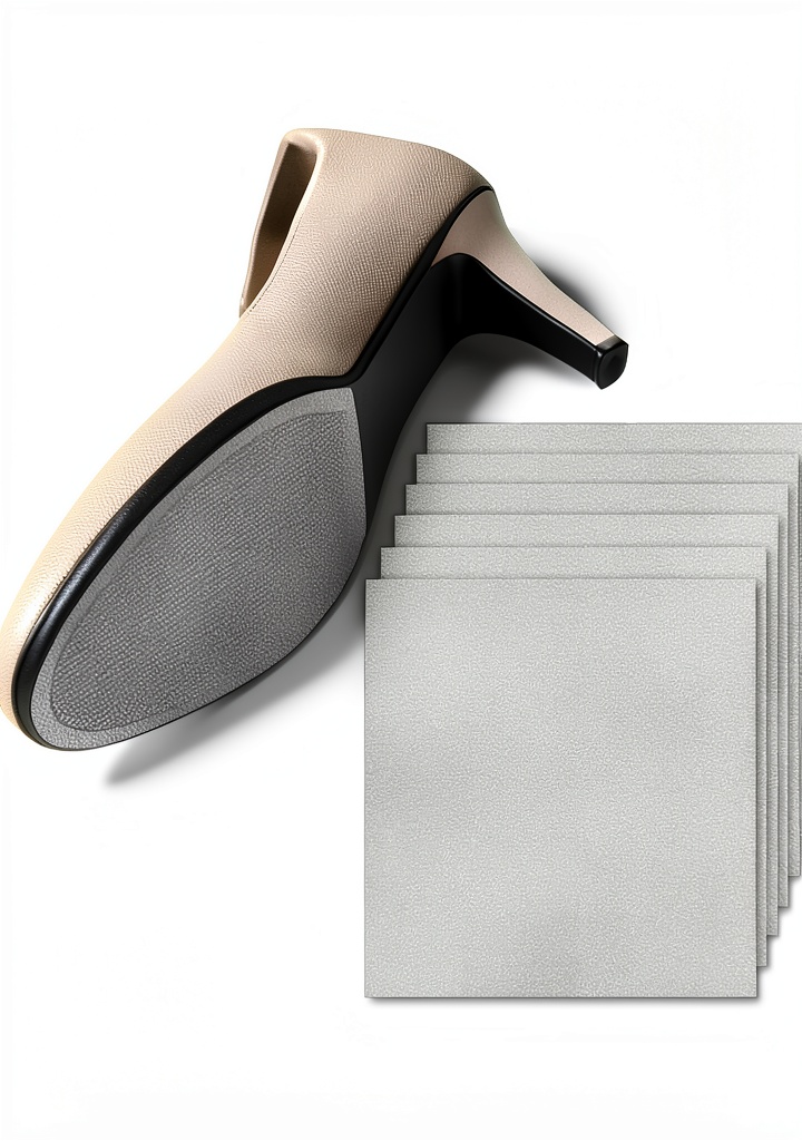Clean the shoe sole thoroughly, peel off the backing, and press the sticker firmly onto the sole. For removal, gently heat the sticker with a hairdryer to loosen the adhesive.