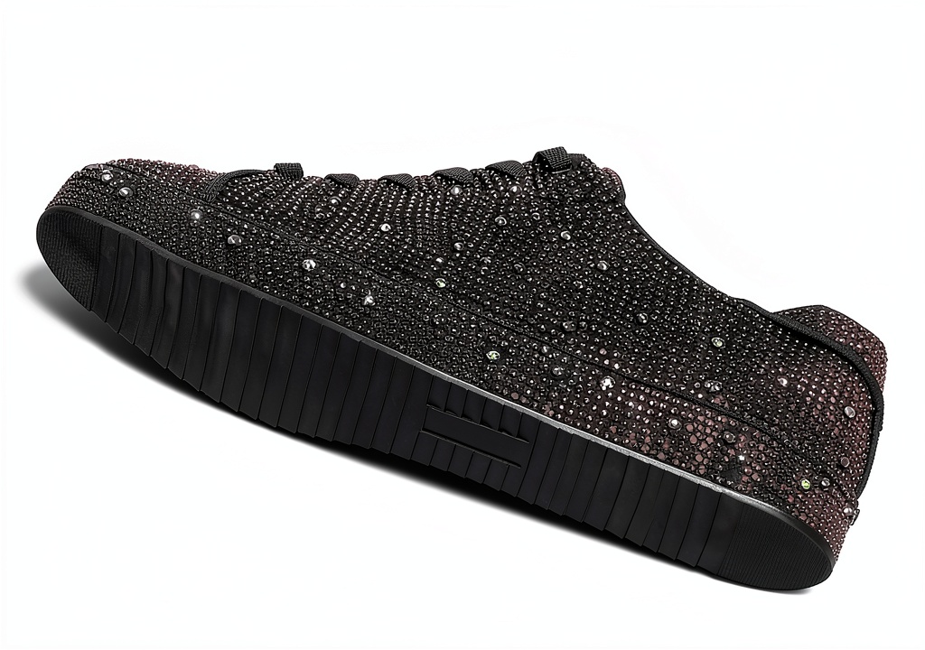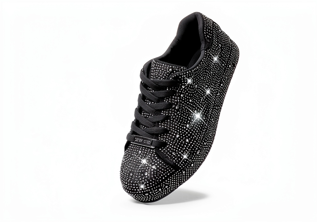 - Rhinestone-embellished mesh upper for a sparkling, eye-catching design